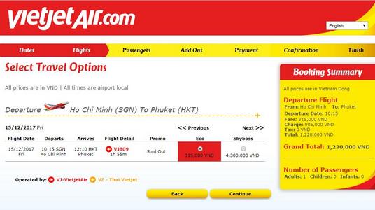 1) Эконом (ручная кладь до 7кг) - Хошимин - Пхукет = 1 220 000 VND (54$)